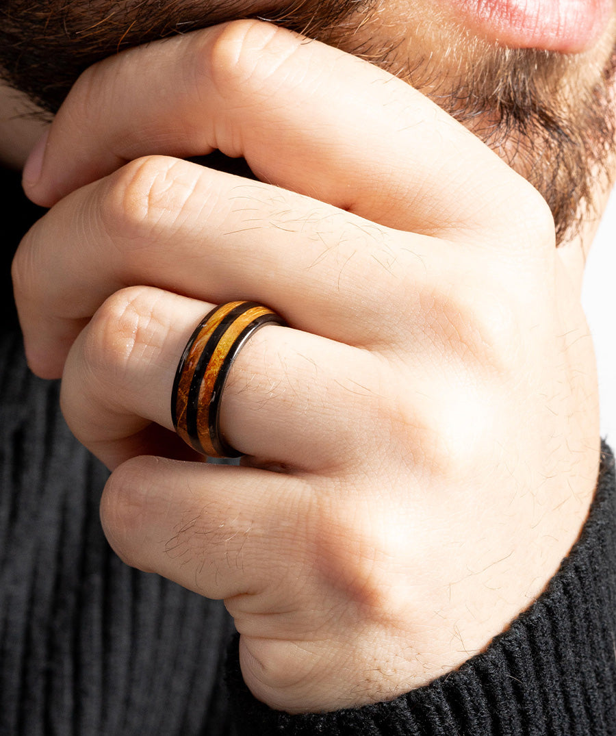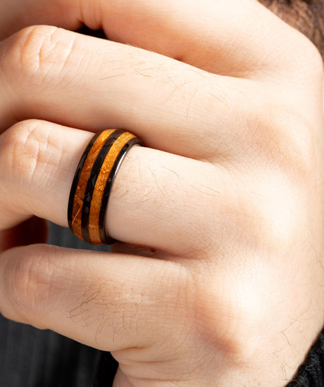 The Oaklen Original is our signature design - a delicately hand-crafted band made from forged tungsten with oak whisky barrel inlay.